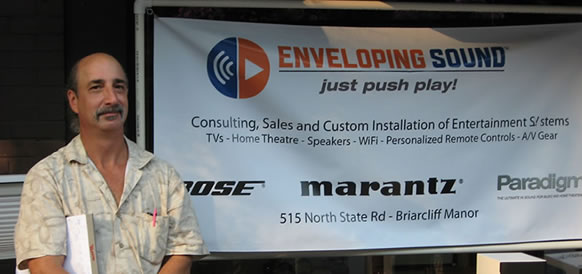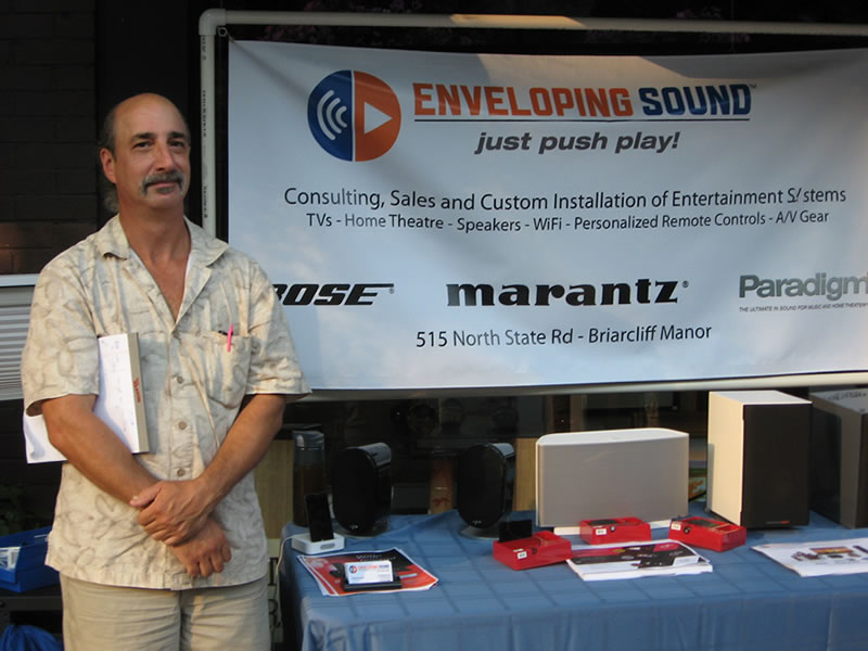 "Golden Ears" one of Enveloping Sound's cracker jack engineers mans our table on the town's main drag for the Briarcliff Manor Chamber of Commerce marketing events.